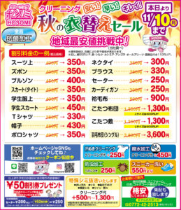 只今秋の衣替えセール開催中!